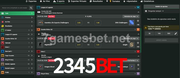 O 2345Bet oferece uma grande seleção de opções de apostas em e-sports com probabilidades competitivas